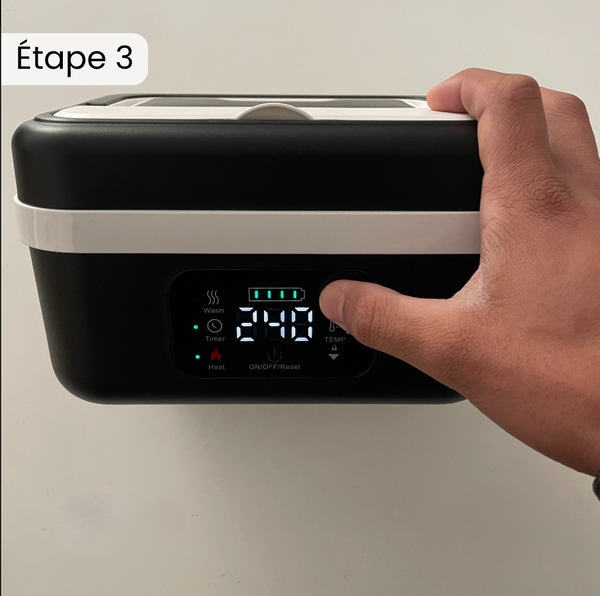 La GoGoBox™ est conçue pour être ultra intuitive : il suffit de verser votre repas, refermer le couvercle et appuyer sur le bouton de chauffe.
