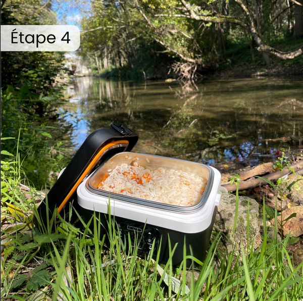 Ensuite, vous pouvez chauffer 1 à 2 repas n’importe où, sans prise, sans micro-ondes, et sans aucune onde nocive.