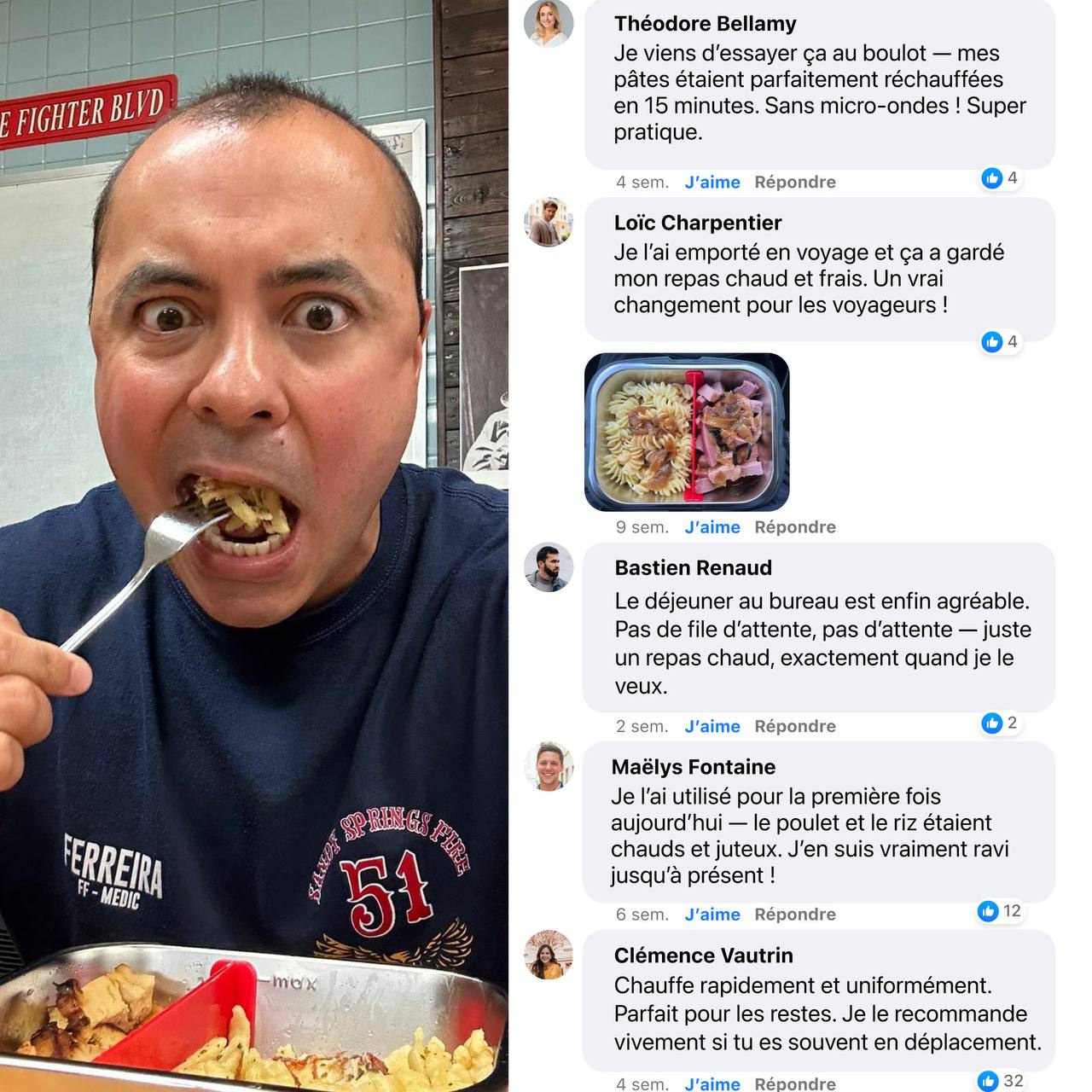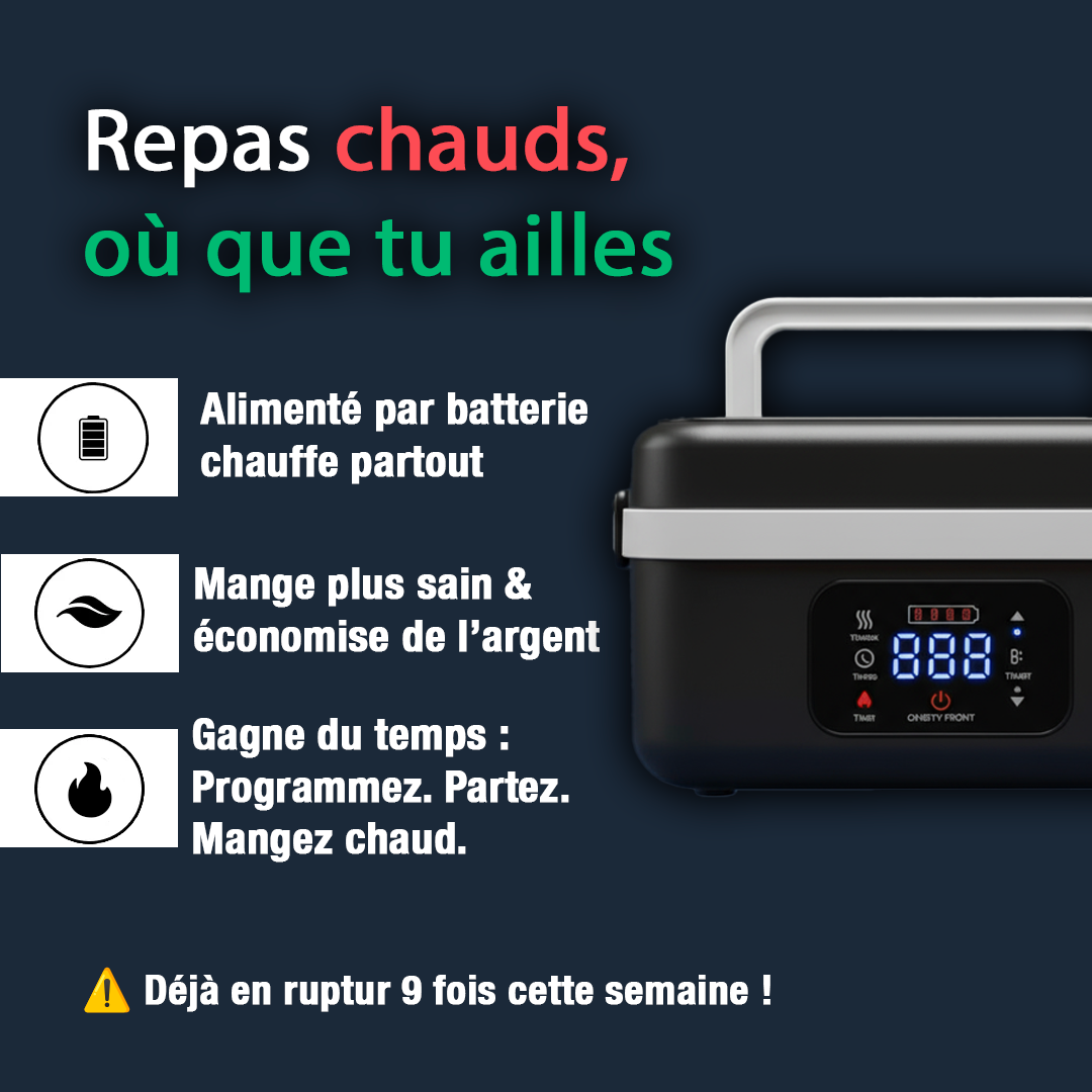 - Profitez de la flexibilité d'un repas chaud partout, sans dépendre d'un micro-ondes.